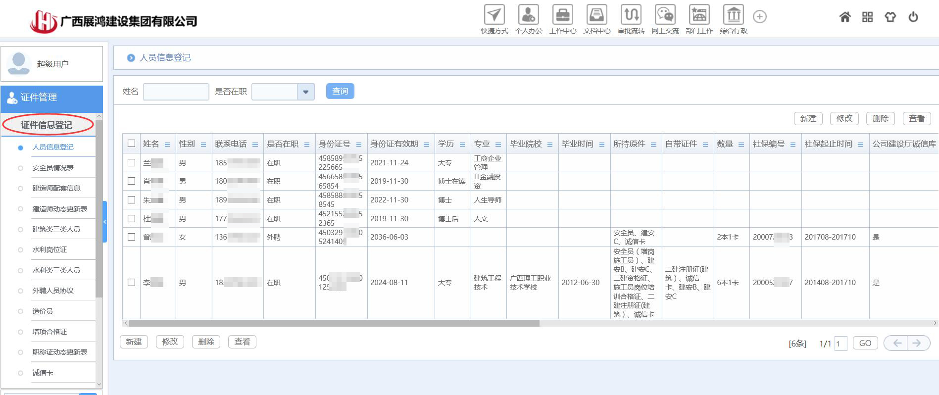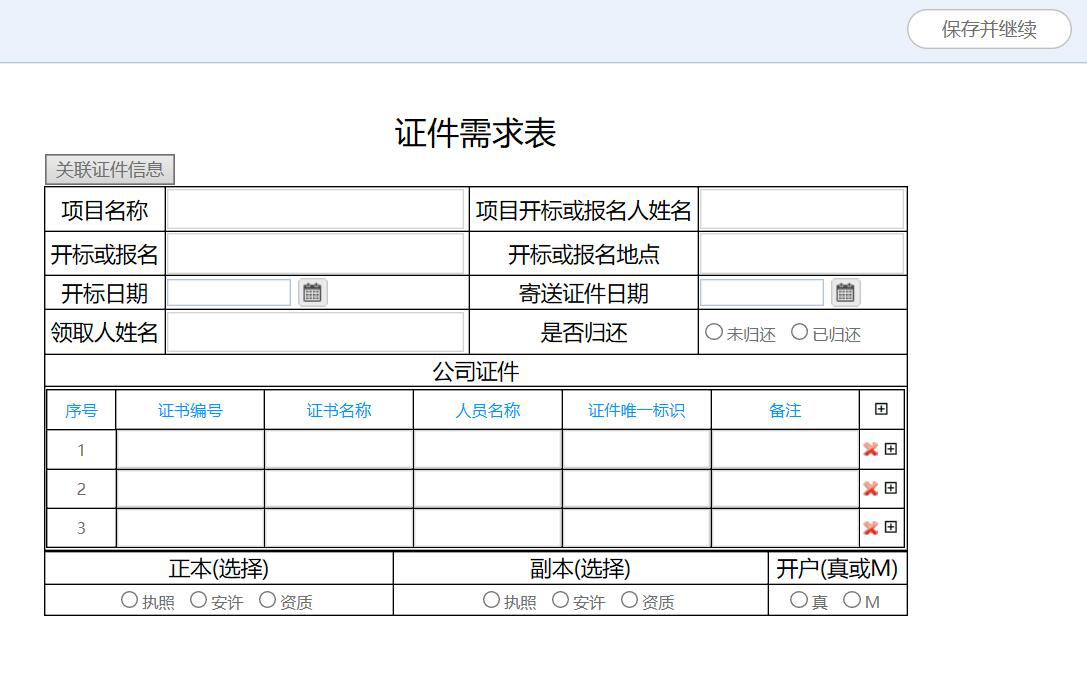 (2)對(duì)證件資源的流動(dòng)過(guò)程進(jìn)行規(guī)范化管理,包括證件的借出、歸還、注冊(cè)/增項(xiàng)/年檢等,方便了解每一個(gè)證件狀態(tài),證件所在項(xiàng)目、責(zé)任人等,以實(shí)現(xiàn)公司證件資源利用效益最大化;