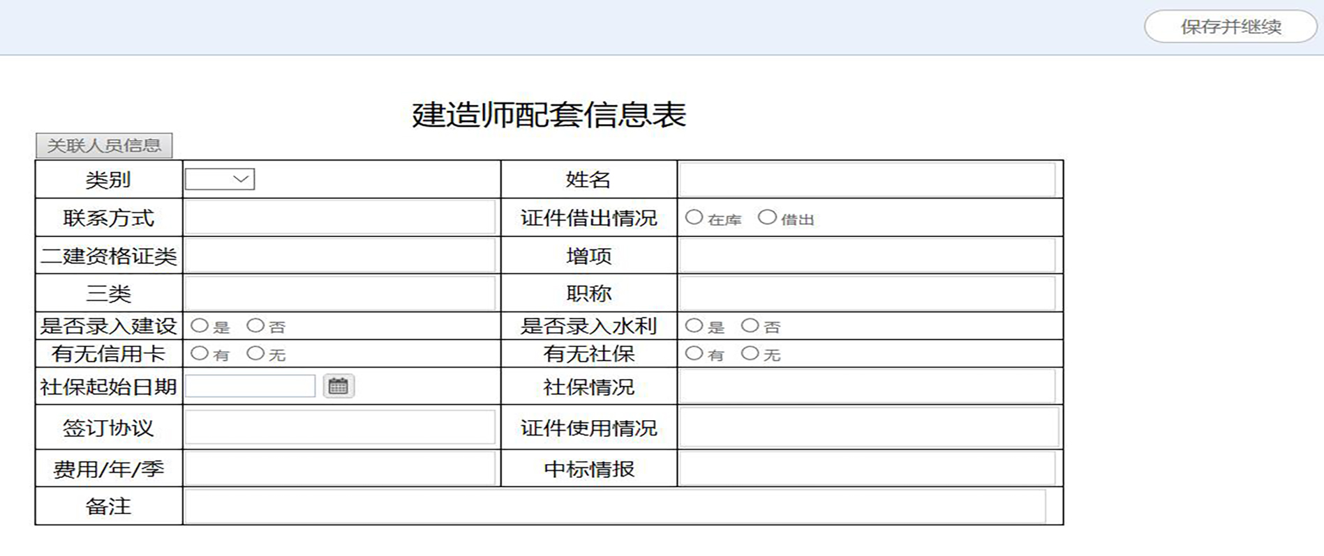 建造師配套信息表