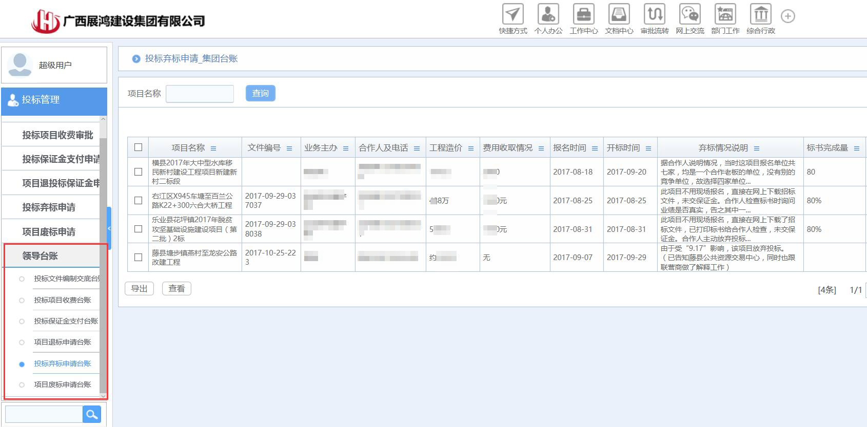 匯高投標(biāo)管理模塊功能可以涵蓋從搜集市場(chǎng)信息、信息立項(xiàng)并跟蹤、招投標(biāo)文件的購(gòu)買(mǎi)、資格的內(nèi)部審查、項(xiàng)目前期勘察的記錄、投標(biāo)預(yù)算文件的審核、投標(biāo)保證金的申請(qǐng)、競(jìng)爭(zhēng)對(duì)手請(qǐng)款的分析、項(xiàng)目招待費(fèi)的統(tǒng)計(jì)等功能。通過(guò)投標(biāo)管理模塊,使建筑公司建立簡(jiǎn)潔明了的市場(chǎng)信息和投標(biāo)清單條目,幫助用戶(hù)建立企業(yè)過(guò)往投標(biāo)情況、企業(yè)投標(biāo)資源信息資料庫(kù)等,并對(duì)它們進(jìn)行管理和分析,為投標(biāo)分析、投標(biāo)報(bào)價(jià)和投標(biāo)決策提供充分的輔助信息。