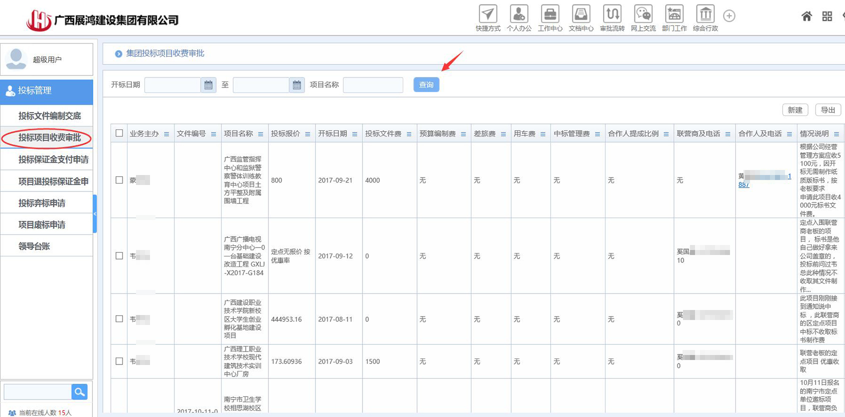 涵蓋從搜集市場(chǎng)信息、信息立項(xiàng)并跟蹤、招投標(biāo)文件的購(gòu)買(mǎi)、資格的內(nèi)部審查、項(xiàng)目前期勘察的記錄、投標(biāo)預(yù)算文件的審核、投標(biāo)保證金的申請(qǐng)、競(jìng)爭(zhēng)對(duì)手請(qǐng)款的分析、項(xiàng)目招待費(fèi)的統(tǒng)計(jì)等功能
