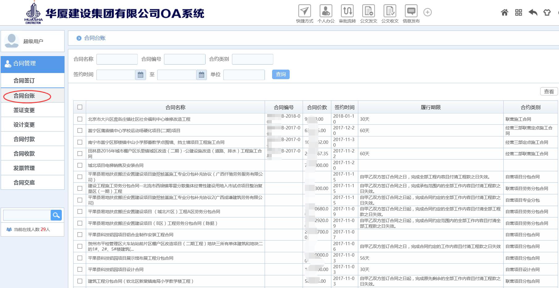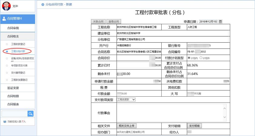 匯高可以結(jié)合建筑公司的合同管理需求自定義搭建適合企業(yè)應(yīng)用的合同管理應(yīng)用模塊,涵蓋與甲方的項(xiàng)目承包合同、勞務(wù)分包合同、材料采購(gòu)合同、設(shè)備租賃合同的在線審批流轉(zhuǎn),合同臺(tái)賬自動(dòng)生成方便查詢(xún);合同付款申請(qǐng)-審批(審批過(guò)程中可以與相應(yīng)合同進(jìn)行關(guān)聯(lián),自動(dòng)帶出合同數(shù)據(jù)、歷史付款記錄及付款數(shù)據(jù),如累計(jì)已支付金額、累計(jì)已支付比例、還有多少?zèng)]付等),合同變更管理,財(cái)務(wù)票據(jù)管理等,能夠?qū)崿F(xiàn)按照公司架構(gòu)體系、崗位權(quán)責(zé)體系進(jìn)行智能化自動(dòng)流轉(zhuǎn)及相應(yīng)權(quán)限控制,支持自定義查詢(xún),自動(dòng)生成指定格式的合同執(zhí)行統(tǒng)計(jì)分析報(bào)表方便領(lǐng)導(dǎo)查看,實(shí)現(xiàn)合同的統(tǒng)一管理,可控、可知。