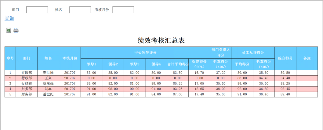 績效考核匯總表
