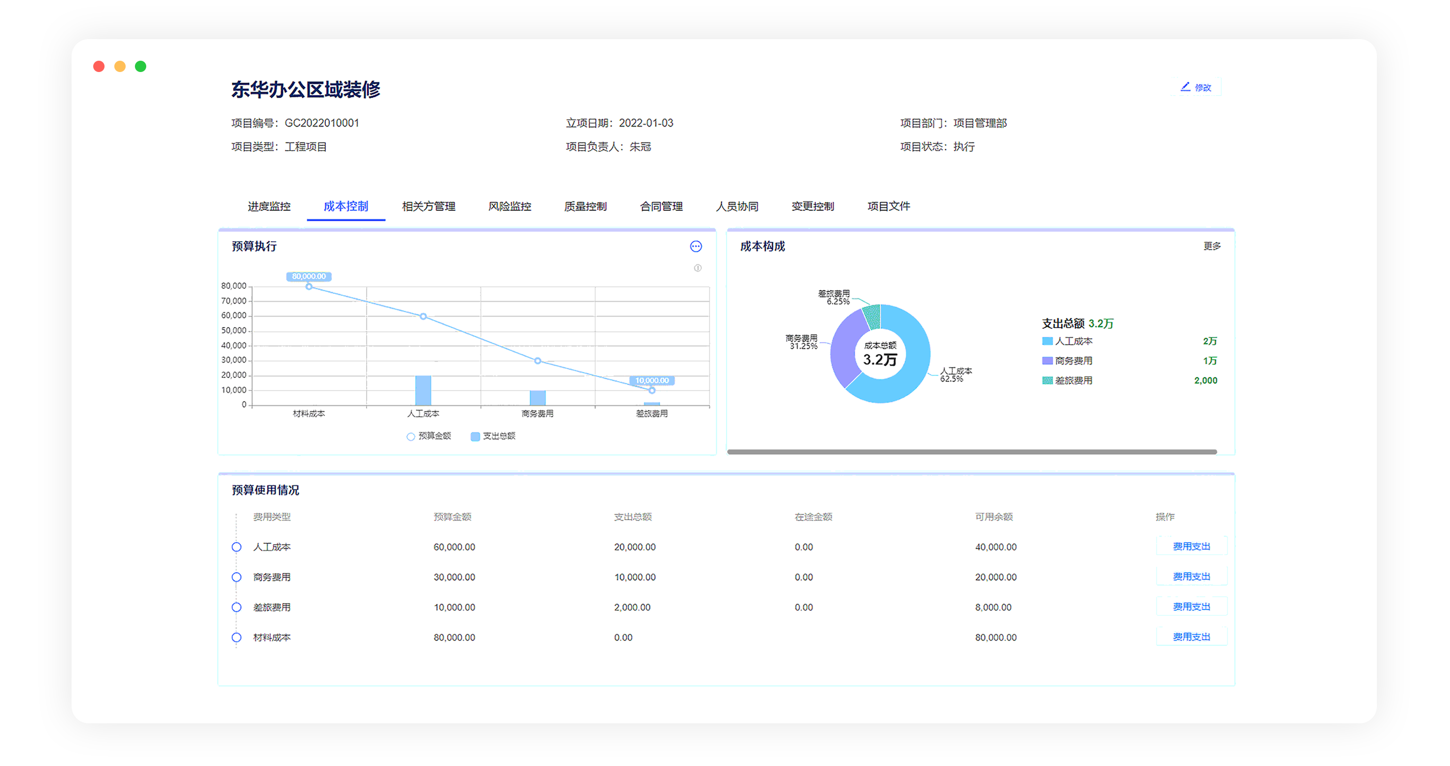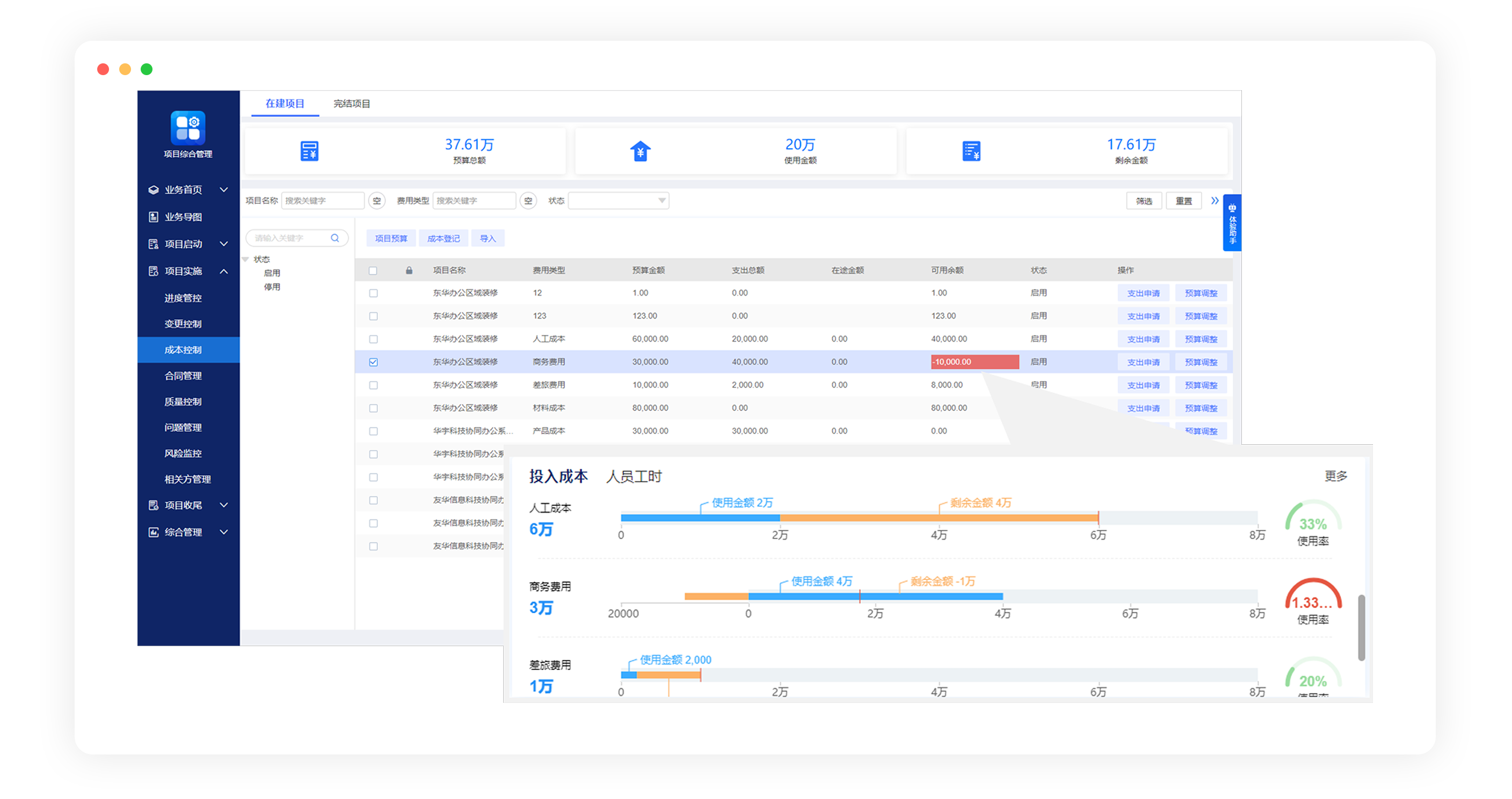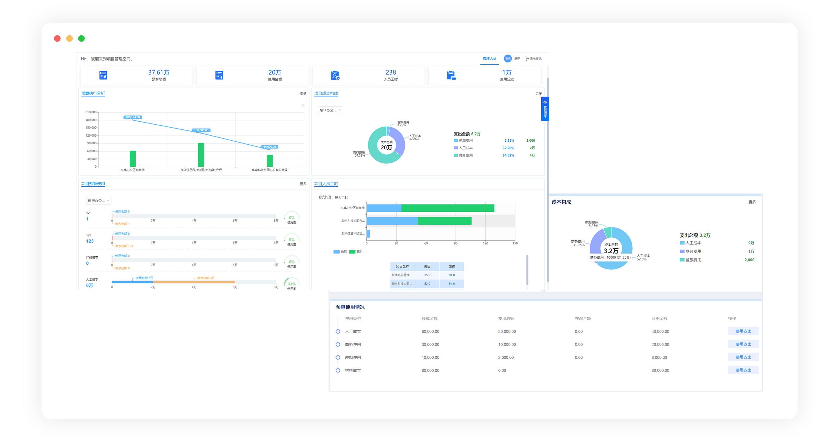 支持從單項資源、團隊資源、整個項目實際成本與預算對比分析等維度,進行成本分析,哪些版塊成本高、哪些成本可以再優(yōu)化清楚掌握。