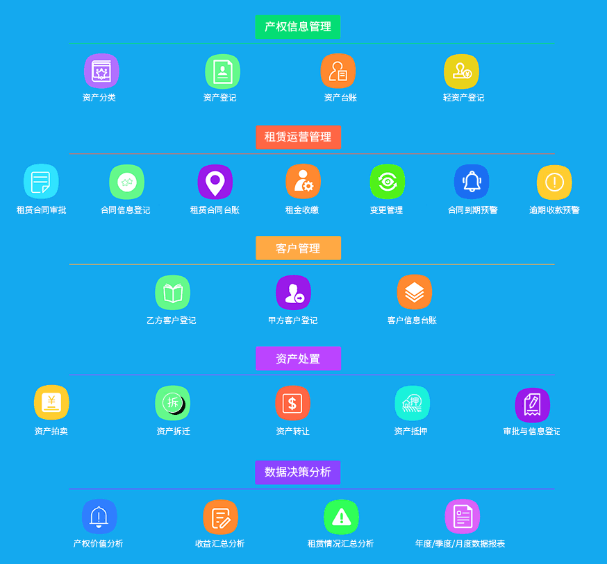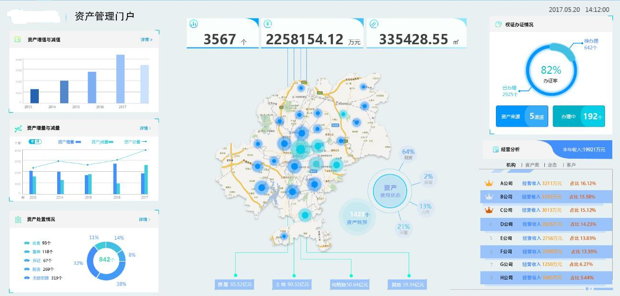 華天動力通過多年對國有投融資平臺資產(chǎn)經(jīng)營管理業(yè)務(wù)的研究及信息化服務(wù)實(shí)踐,基于自有強(qiáng)大的自定義開發(fā)建模及數(shù)據(jù)報(bào)表引擎,支持為不同類型的國有投資企業(yè)客戶化構(gòu)建符合自身管理制度及需求應(yīng)用的“資產(chǎn)運(yùn)營管理平臺”,實(shí)現(xiàn)對經(jīng)營性資產(chǎn)(如:土地、廠房、房屋住宅、寫字樓、商鋪、廣告位等)從取得登記、使用、經(jīng)營、處置等全生命周期的管理。