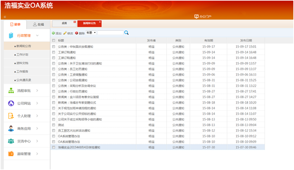 OA協(xié)同軟件核心功能1:流程管理:初級(jí)階段,結(jié)合固定流程與自由流程,既解決原來(lái)的紙質(zhì)單人工“跑單”的問(wèn)題,大大提高流程流轉(zhuǎn)效率,降低人力、物力、時(shí)間成本。又保證企業(yè)內(nèi)公文、文檔格式的要求。中級(jí)階段,逐步實(shí)現(xiàn)常用流程的固定化。